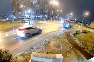 ルーマニア西部トランシルヴァニアのオラデアでメルセデスを運転する55歳の運転手が意識を失ってラウンドアバウトを暴走。その事故を記録した交通カメラのビデオです。運転手は一時的に車に閉じ込められましたが軽傷ですみました。