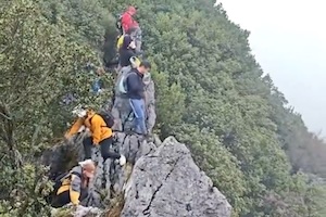 そんな所でもながらスマホなのか。四川省広安市の華英山で、スマートフォンを片手に険しい岩場を通過していた登山客が転落してしまうという事故のビデオです。この岩は高さ40メートルありましたが、15メートルほど落下した所で木に引っかかり助かっています。