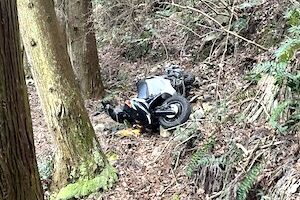 車がいっさい入り込めない登山道の崖下にバイク転落させた仲間が、