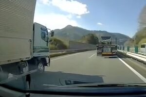 【動画】ぎゃああ怖い。フルブレーキで衝突を回避する積車が真横に(゚o゚)