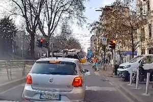 uno dei nuovi tram é deragliato a milano botto fortissimo ho filmato questo lato non mi sarei mai aspettato di vedere sull'altro lato alcune persone sotto il tram non capisco come sia possibile forse stavano attraversando pic.twitter.com/tXons3MwAI