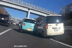 正確に言うとアルトラパンに突っ込みかけて5cmほどの隙間でギリギリ右に回避し、ポルシェにも突っ込みかけて7cmほどの隙間で回避したドラレコ、が正しいのではないだろうか?