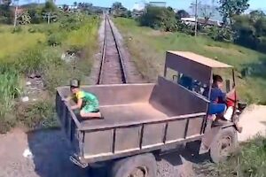 Một chiếc xe ben đã sử dụng lối đi dân sinh tự phát để đi qua đường ray xe lửa thì gặp tai nạn