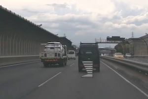 【動画】高速で逆走追い越しをしようとした車がハンドル操作を誤って川に転落。