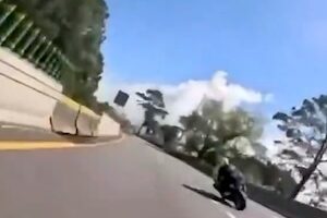 高速道路で転倒したバイカー、間一髪で後続車に避けてもらえるヘルメットカム。