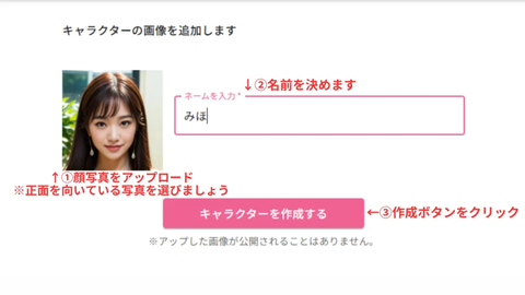 - JPG / PNGに対応。正面がハッキリ写っている写真がベストですが、 横顔や角度違いも複数枚登録しておくと精度が上がりやすいです。