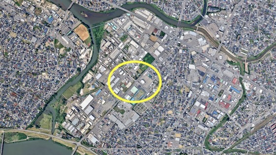 現場のGoogleマップ ここ。仕事先から出ようとしたらクマがフェンスを越えてきた。