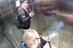 ロシアの馬鹿って次元が違うよな笑。最悪、自分たちが閉じ込められてしまう可能性だってあるのに。ロシア・レニングラード州ムリノのアパートで撮影された、エレベーターの中で花火を発射する男のビデオです。ニュースによると、2人は翌日謝罪し清掃を行ったらしい。