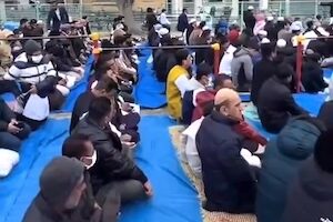 (x.com)モスクからあふれたイスラム教の人達が公園を占拠して、集会をやっています。