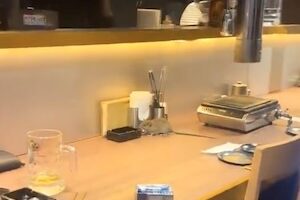店員側からはカウンターを覗き込まないと見えない位置にいるから分かってない