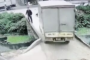 これはかわいそうwwwベトナム北部のタイビンで撮影された不幸なおじさんのビデオです。ベトナムでも1月はさすがに寒いよね。橋がこれだけ狭いんだからトラックも歩行者が渡りきるまで待ってあげればよかったのに(´・_・`)