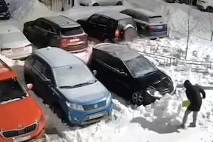 ワロタ。自由に駐車できる場所みたいだからどっちもどっちだわ笑。ロシア西部のトゥーラで撮影された青男と黒男による駐車場所を巡った醜い争いのビデオです。青は自分で除雪したから自分の場所を主張してボックスを置くんだけど、関係ねぇと黒が駐車。それに怒った青が車の前に雪山を作り・・・。最後ワロタ。めちゃくちゃ大変だろそれwww