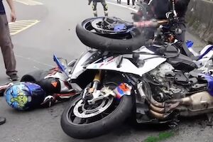 滑ってきたのがS1000RRでつっこんだのがGSX-R1000か。