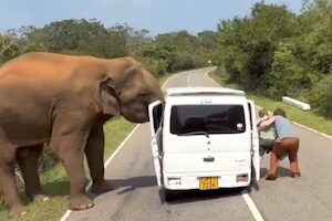 象は3トン、エブリイ1トン。象からしたらただ食べ物を探しているだけよね笑。スリランカでロシア人観光客らが乗ったスズキ・エブリイが大きな象に破壊されるという出来事がありました。そのビデオです。The SUNによると、この直前に観光客が果物を与えていたんだって。