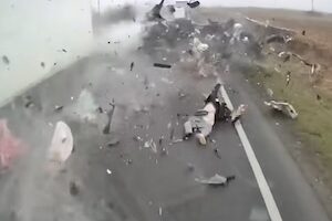 【動画】ウクライナの自爆ドローンを捕まえようとして爆発させてしまったロシア兵。