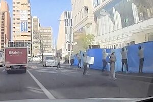 福岡で白昼の逮捕劇。警官4人がかりで盗難車から男を引きずり出す映像が投稿される。