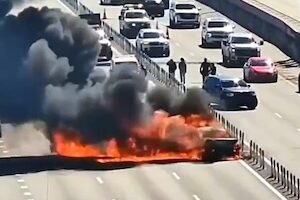 Traffic cameras captured the moment a car burst into flames Friday on Interstate 95 in Pompano Beach, shutting down all northbound lanes. pic.twitter.com/eq1fqctff7
