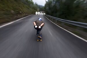 94km/h辺りでブレたのは風かな?狭い下り坂で時速100キロを超えたスケボーダウンヒルの追走ビデオです。Red Bullの動画なのでゴールするのは分かっていたんだけど、いつでもぶっ飛びそうでヒヤヒヤしました。