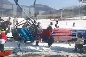 赤ジャケのひと良く見てたな。ナイスしゃがみ回避。中国遼寧省のスキーリゾートで撮影された、制御不能に陥ったリフトが逆流してしまうという事故のビデオです。スキー場関係者によるとこの事故による負傷者はありませんでした。