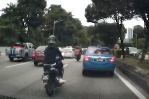 ワロタ。またこれかよ。紹介するの何度目だ(ノ∇`)マレーシアで撮影された自動車に蹴りを入れようとしたバイク乗りが転倒してしまう瞬間のドライブレコーダーです。その後も詰め寄っている所を見るとこの前からトラブルがあったのかしら。