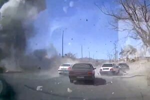 فيديو مُسجّل من كاميرا السيارة لحظة القصف في ايران ..