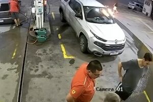 1、携行缶のガソリン約1ガロンをこぼして立ち去る。2、戻ってきて火を付けて逃走。3、もう一度放火しようと戻ってきた所を逮捕。ブラジル・サンタカタリーナ州オルレアンスのガソリンスタンドで撮影された放火事件のビデオです。これはたぶん病気の人だろうな。