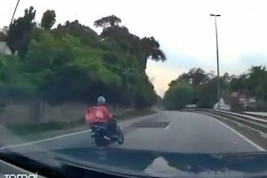 これはひでぇ。道路の補修跡で色が変わっているだけだと思ったらそこには大きな段差があった。マレーシア・スランゴル州カジャンで撮影された不幸なバイク乗りのビデオです。撮影車も轢いてしまわなくて良かったね。