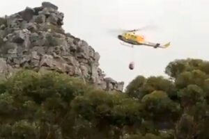 放水は完璧だったように見える。南アフリカ・ケープタウンのテーブル・マウンテン国立公園で発生した山火事の消火活動にあたっていたヘリコプターが岩山に接触して墜落。その瞬間を記録したビデオです。この事故でパイロット1名が軽傷。ってか1人でやってんのか。