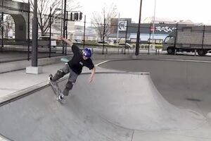 びたーん(@_@;)後ろ側のタイヤが縁に引っかかったのか。大阪府堺市中区八田寺町の原池公園スケートボードパークで顔面骨折の怪我を負ったスケートボーダーのビデオです。怪我が付き物の遊びだけど顔面骨折はキツいだろうなあ・・・。
