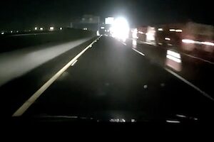 【衝撃】伊勢湾岸道で大型トラックが軽自動車をひっかける大事故の映像。
