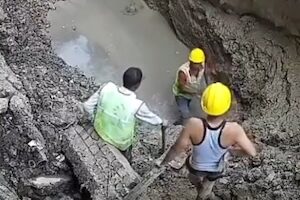 A labourer got into a pit while pipeline work was going on.